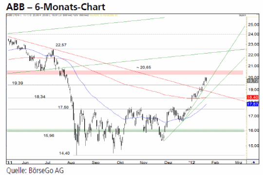 Ausblick: Das Hoch der vergangenen Handelswoche wurde exakt bei 20,00 CHF markiert. Am Freitag setzten jedoch stärkere Gewinnmitnahmen ein. Die Aktien verzeichneten dabei den zweitgrössten Tagesverlust des noch jungen Handelsjahres und könnten gerade, aufgrund dieser Situation, die Chance zum Einstieg bieten. Die Long-Szenarien: Behalten die Käufer ihr Interesse an den Aktien aufrecht, sollte in Kürze das Niveau von 20,65 CHF attackiert werden. Ein Ausbruch darüber verspricht weiteres Potenzial bis 22,57 sowie 24,08 CHF. Die Short-Szenarien: Fallen die Aktien unter die Unterstützungsmarke von 18,34 CHF zurück, wären Abgaben bis 17,50 CHF zu erwarten. Ein Unterschreiten dieses Niveaus sollte im weiteren Verlauf zu Rücksetzern bis rund 16,00 CHF führen. Gelingt auch dort keine Stabilisierung, müsste eine Korrekturausdehnung bis zum Tief vom August bei 14,40 CHF eingeplant werden.