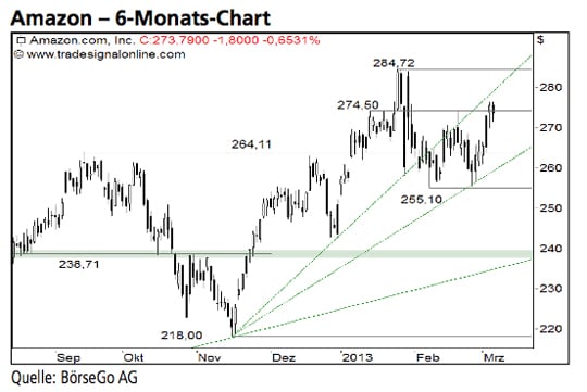 Rückblick: Die Aktien von Amazon befinden sich seit Jahren in einem stabilen Aufwärtstrend, in dessen Verlauf im September 2012 mit 264,11 USD ein neues...