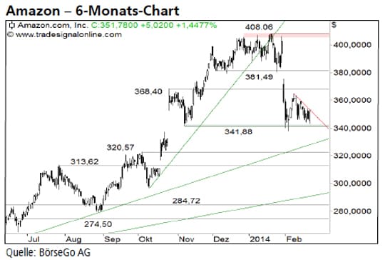 Rückblick: Nach dem Ausbruch über den Widerstand bei 284,72 USD im Juli des vergangenen Jahres setzten die Aktien von Amazon ihren enormen Aufwärtstrend fort und...