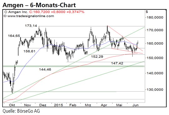 Ausblick: Die Aktien von Amgen haben in den vergangenen Wochen ausreichend konsolidiert und könnten innerhalb des langfristigen Aufwärtstrendkanals neue Hochs ansteuern. Die Käufer müssten allerdings am Ball bleiben. Die Long-Szenarien: Kurzfristig könnte sich die Erholung bei dem Biotech-Wert noch bis an den Widerstand bei 164,65 USD fortsetzen. Dort dürften die Bären eine gute Möglichkeit wittern, die Aktien wieder nach unten zu drücken. Erst wenn diese Hürde genommen wurde, wäre Platz bis zur Marke von 173,14 USD. Diese bildet das zentrale Ausbruchsniveau für ein neues langfristiges Kaufsignal. Ein Tages-, besser noch Wochenschlusskurs, darüber würde Potenzial auf zunächst 180,00 USD und danach für Kurse über 200,00 USD eröffnen. Die Short-Szenarien: Temporäre Rücksetzer sind möglich, sollten aber bei 156,61 USD und spätestens 152,29 USD stoppen. Neue Verlaufstiefs unter 152,29 USD dürften einen Test des Jahrestiefs bei 147,42 USD bewirken. Unter 147,42 USD wäre ein starkes Verkaufssignal mit Kursziel 128,96 USD aktiviert.