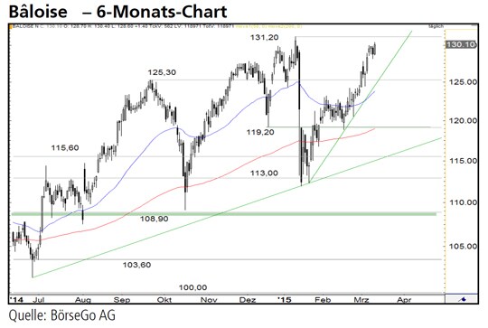 Rückblick: Die Aktien von Bâloise befinden sich in einem intakten langfristigen Aufwärtstrend, dem auch der allgemeine Markteinbruch nach dem SNB-Entscheid zum EUR/CHFMindestkurs nur wenig anhaben konnte.