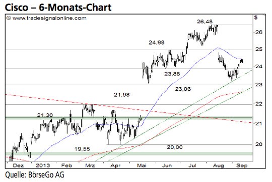 Rückblick: Nachdem die Aktien von Cisco im Juli 2012 die wichtige Unterstützung bei 14,90 USD verteidigt hatten, setzte sich der im Vorjahr eingeschlagene Aufwärtstrend...