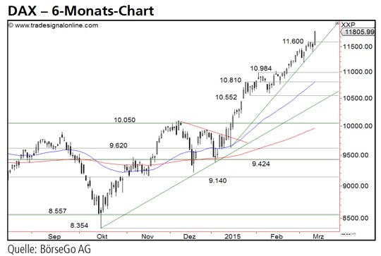 Rückblick: Nach dem Ausbruch über das damalige Allzeithoch bei 10.093 Punkten Mitte Januar dieses Jahres zog der DAX Index ohne Zwischenkorrekturen bis in den Bereich um 11.000 Punkte an.