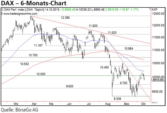 Rückblick: Der DAX Index befindet sich seit Anfang August im zweiten Teil eines übergeordneten Abwärtstrends, der zunächst zu einem Einbruch bis 9.338 Punkte geführt hatte.
