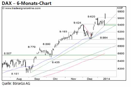 Rückblick: Mit dem Ausbruch über den Widerstand bei 9.193 Punkten beendeten die Bullen beim DAX Index Mitte Dezember eine Korrekturphase...