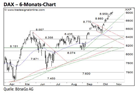 Rückblick: Nachdem sich der DAX nach Ausbildung eines Hochs bei 8.770 Punkten im September bis in den Oktober hinein eine Verschnaufpause gönnte, durchbrach...