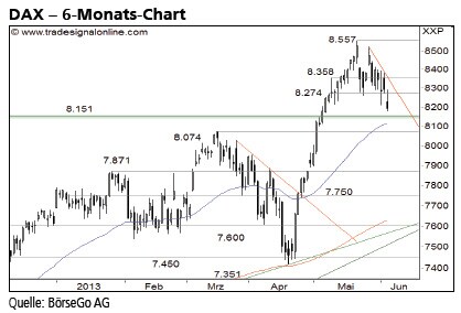 Rückblick: Mit einem steilen Aufwärtsimpuls beendete dieKäuferseite im April eine kurzfristige Korrekturphase im DAXIndex und kaufte den Wert innerhalb weniger Tage über dasfrühere Allzeithoch bei 8.151 Punkten.