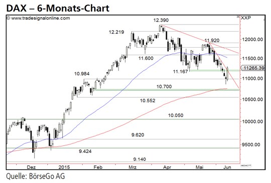 Rückblick: Seit Anfang April bestimmt eine weitreichende Korrekturbewegung den Kursverlauf des DAX Index, die zunächst Anfang Mai an der 11.167 Punkte-Marke gestoppt wurde.