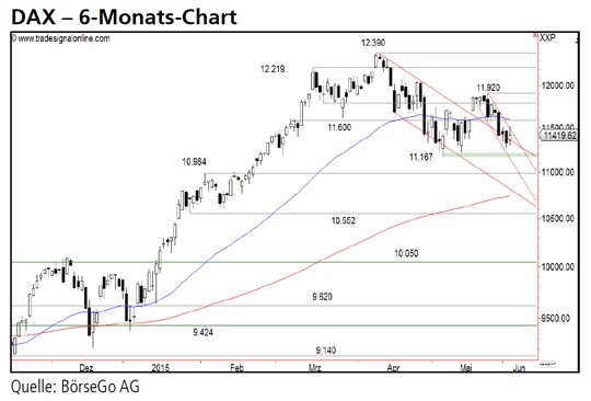 Rückblick: In einer mehrwöchigen Korrekturbewegung setzte der DAX von seinem neuen Allzeithoch an die Unterstützung bei 11.200 Punkten zurück.