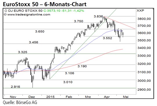 Rückblick: Ende April unterschritt der EuroStoxx 50 Index die Marke von 3.650 Punkten, wodurch sich das Chartbild kurzfristig eintrübte. Bis dahin war der in diesem Jahr etablierte Aufwärtstrend formal noch intakt.