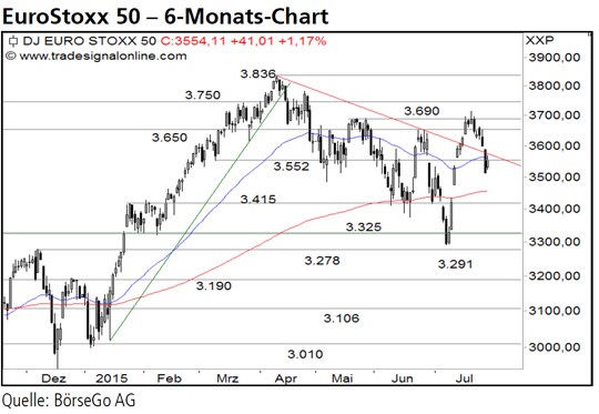 Eigentlich sah der Anstieg des EuroStoxx 50 Index Anfang bis Mitte Juli überzeugend aus. Der Index überwand dabei eine mittelfristige Abwärtstrendlinie und setzte so weiteres Aufwärtspotenzial frei.