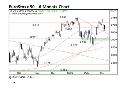 Rückblick: Nach einer Bodenbildung an der Unterstützung bei 2.557 Punkten erholte sich der EuroStoxx 50 Index und stieg über den kurzfristigen Widerstand bei 2.638 Punkten.