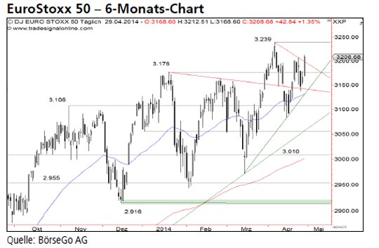 Rückblick: Nachdem die Käuferseite den EuroStoxx 50 Index im März über das bisherige Rallyhoch bei 3.176 Punkten angetrieben hatte, schloss sich dieser Kaufwelle eine ausgeprägte Korrektur an.