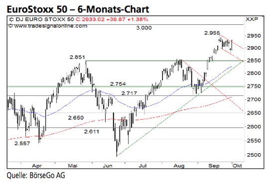 Rückblick: Der EuroStoxx 50 Index stieg in den vergangenen Tagen über den Widerstand bei 2.851 Punkten an und generierte...