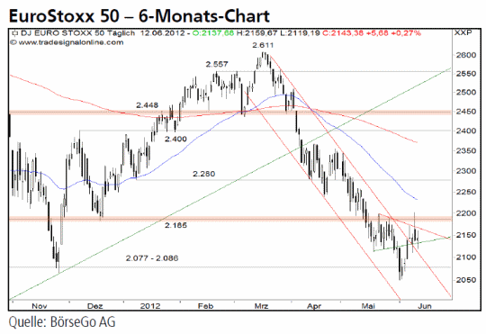 Rückblick: Der EuroStoxx 50 Index fiel im Rahmen seines seit März ausgebildeten Abwärtstrendkanals...