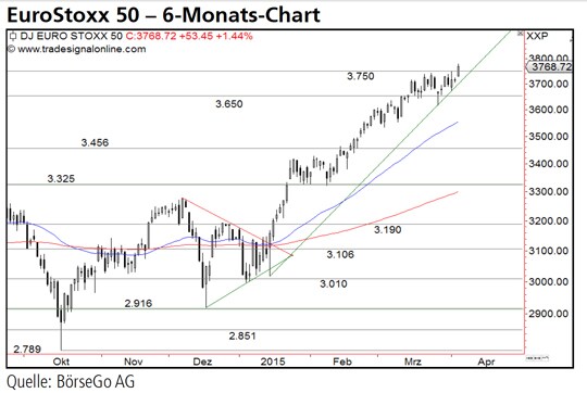 Rückblick: Im gestrigen Handel brach der EuroStoxx 50 Index über den Widerstand bei 3.750 Punkten aus, der den steilen Anstieg seit Mitte Januar in der Vorwoche abgebremst hatte.