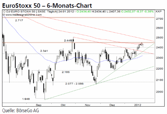 Rückblick: Der EuroStoxx 50 konnte im Anschluss an eine Kaufwelle Ende November knapp über den Widerstand...