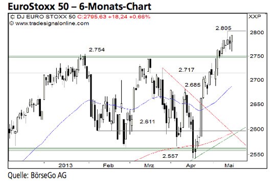 Rückblick: Der EuroStoxx 50 Index überschritt Mitte April in einer steilen Aufwärtsbewegung eine kurzfristige Abwärtstrendlinie und generierte...