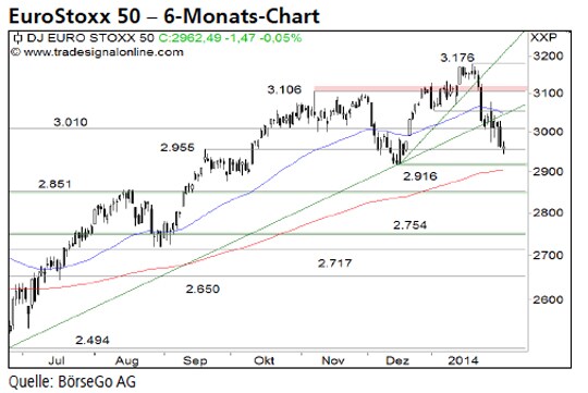 Rückblick: Nach dem Hoch bei 3.176 Punkten setzte sich beim EuroStoxx 50 Index Ende Januar eine korrektive Verkaufswelle in Gang, die den Wert ...
