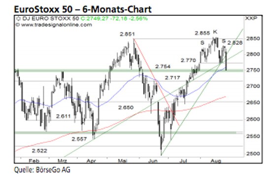 Rückblick: Ein Erholungsimpuls ausgehend vom Tief im Juni bei 2.494 Punkten brachte den EuroStoxx 50 Index zurück an das bisherige Jahreshoch bei 2.851 Punkten.