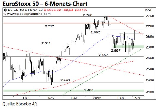 Rückblick: Der EuroStoxx 50 Index befindet sich seit dem Hoch Anfang Februar in einer Korrekturphase, die durch den Bruch der Unterstützung bei 2.685 Punkten...