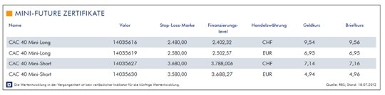 *Quelle RBS Märkte & Zertifikate Juli-August 2012
