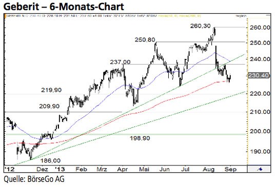 Rückblick: Zu Jahresbeginn 2013 brachen die Aktien von Geberit nach mehreren Anläufen erfolgreich über den Wider- stand bei 209,90 CHF und direkt...