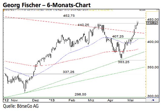 Rückblick: Nach einem gewaltigen langfristigen Kurseinbruch waren die Aktien von Georg Fischer seit dem Frühjahr 2009 in einer steilen Aufwärtsbewegung...