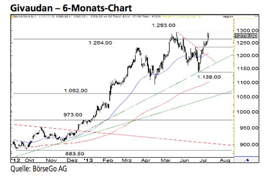 Rückblick: Im Juli 2012 erreichten die Aktien von Givaudan im Rahmen ihres Aufwärtstrends den markanten Widerstand bei 973,00 CHF, den sie nach einer...