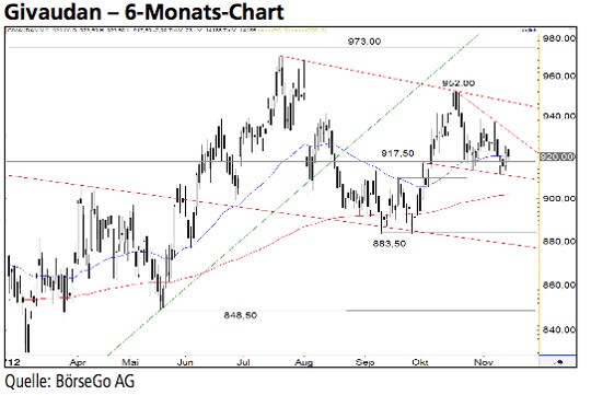 Rückblick: Die Aktien von Givaudan stiegen seit Oktober 2011 in einem steilen Aufwärtstrend an und durchbrachen im Juni 2012 bereits das Verlaufshoch...