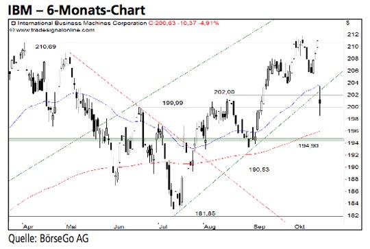 Rückblick: Die Aktien von IBM stiegen bis März 2012 im Rahmen des langfristigen Aufwärtstrends auf ein Allzeithoch bei 210,69 USD. Ausgehend von...