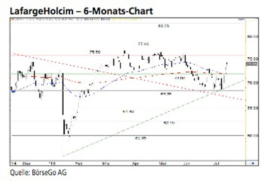 Mit der Rückeroberung der Unterstützung bei 59,95 CHF setzte sich bei den Aktien von LafargeHolcim im Februar ein enormer Gegenschlag der Käufer in Gang, der den Abwärtstrend der Vormonate stoppte.