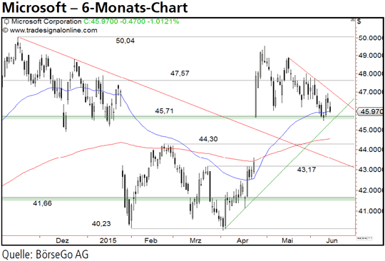 Nachdem eine starke Kaufwelle mit einem Hoch bei 50,04 USD im November 2014 zu Ende gegangen war, setzte bei den Aktien von Microsoft eine deutliche Korrektur ein.