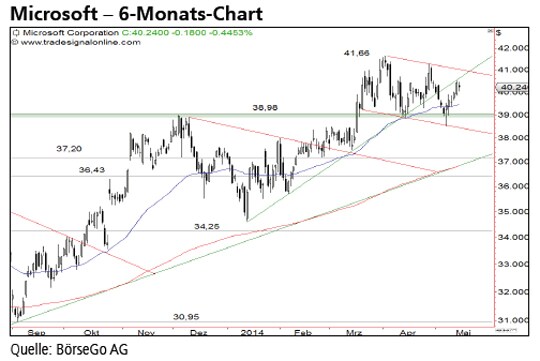 Rückblick: Die Aktien von Microsoft brachen im Oktober des vergangenen Jahres über eine kurzfristige Abwärtstrendlinie bei 33,00 USD aus und beendeten damit eine mehrwöchige Konsolidierungsphase.
