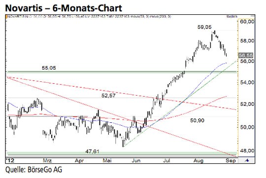 Rückblick: Die Aktien von Novartis konsolidierten den massiven Kursanstieg seit August 2011 in den letzten Monaten unterhalb des starken Widerstands...