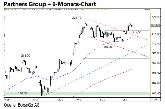 Rückblick: Die Aktien von Partners Group stiegen im Rahmen ihres übergeordneten Aufwärtstrends im Frühjahr 2012 in den Bereich des Allzeithochs...