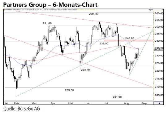 Rückblick: Mit einem Hoch bei 273,50 CHF endete ein langfristiger Aufwärtstrend bei den Aktien von Partners Group im Juli des vergangenen Jahres.