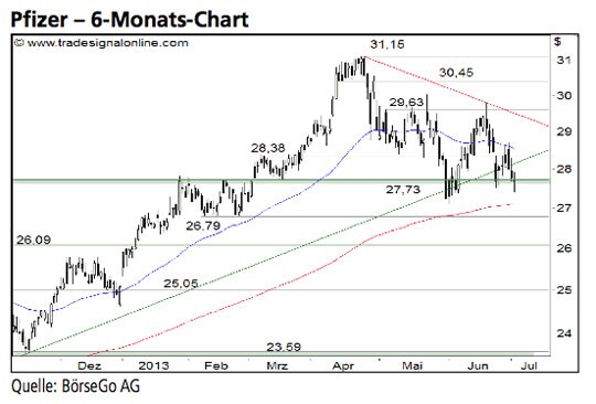 Rückblick: Mit dem Anstieg über den langfristigen Wider- stand bei 21,45 USD bildeten die Aktien von Pfizer gegen Ende des Jahres 2011 ein übergeordnetes...