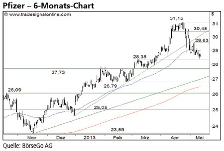Rückblick: Seit einem Tief bei 16,63 USD im August 2011bestimmt ein langfristiger und stabiler Aufwärtstrendkanalden Kursverlauf der Aktien von Pfizer.