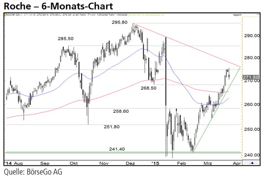 Rückblick: Nachdem die Aktien von Roche noch im Dezember vergangenen Jahres auf ein neues Allzeithoch bei 295,80 CHF gestiegen waren, sorgte die Ankündigung der SNB, die Untergrenze bei EUR/CHF nicht mehr zu stützen, auch bei diesem Wert für einen massiven Kursrutsch.