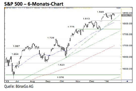 Rückblick: Ende Dezember markierte der S&P 500 Index im Rahmen einer steilen Kaufwelle ein neues Allzeithoch bei 1.849 Punkten und setzte ausgehend von dieser Marke zu einer mehrtägigen Korrekturbewegung an.