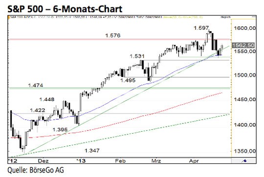 Rückblick: Ausgehend von der Unterstützung bei 1.347 Punkten stieg der S&P 500 Index seit November 2012 in einer steilen Kaufwelle über mehrere markante Widerstände...