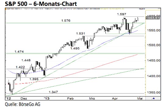 Rückblick: Der S&P 500 Index erreichte nach dem Ausbruch über die 1.576 Punkte-Marke Anfang April ein neues Allzeit- hoch bei 1.597 Punkten und setzte...