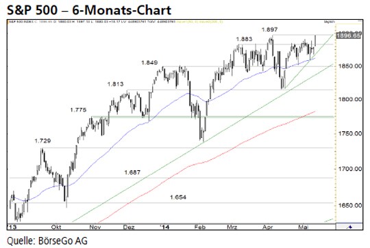 Rückblick: Anfang Februar startete beim S&P 500 Index eine weitere steile Kaufwelle, die den Wert in der Spitze auf ein neues Allzeithoch bei 1.897 Punkten führte.