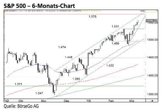 Rückblick: In der vergangenen Woche gelang den Bullen beim S&P 500 Index der erfolgreiche Ausbruch über das bisherige Verlaufshoch bei 1.531 Punkten...