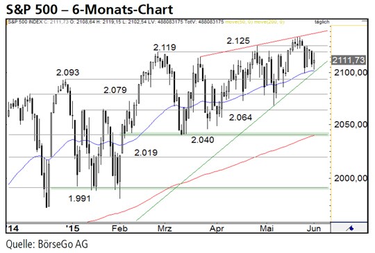 Rückblick: Es hätte so schön sein können! Doch Anleger, die sich vor rund zwei Wochen im S&P 500 Index nach dem Anstieg über den Widerstand bei 2.125 Punkten und damit auf ein neues Allzeithoch einen neuen Aufwärtsschub erhofft hatten, wurden enttäuscht.