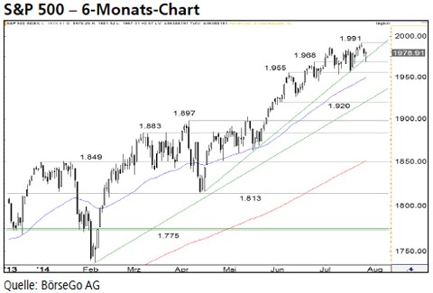 Rückblick: Seit Anfang April befindet sich der S&P 500 Indexim zweiten Teil einer steilen mittelfristigen Aufwärtsbewegung,die den Wert sukzessive auf immer neue Allzeithochs geführthatte.