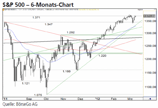 Rückblick: Der S&P 500 Index stieg im Rahmen des Aufwärtstrends,der seit Anfang Oktober 2011 den Kursverlauf ...