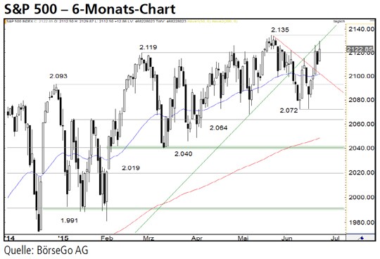 Rückblick: Im Rahmen der nach dem neuen Rekordhoch bei 2.135 Punkten begonnenen Korrektur brach der S&P 500 Index in der vergangenen Woche erneut an die Unterstützung bei 2.072 Punkten ein.
