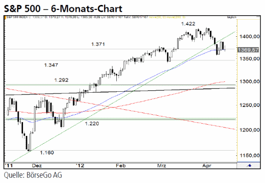 Rückblick: Der S&P 500 Index fiel in der vergangenen Woche unter die seit Oktober 2011 federführende Aufwärtstrendlinie zurück...